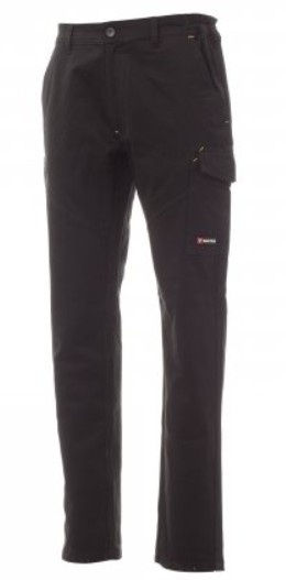 Unisexové kalhoty, zimní, elastické pásky na bocích a poutka v pase, zapínání na zip a plastový knoflík. Dvě přední kapsy klasického střihu, jedna postranní kapsa LOCK SYSTEM, jedna kapsa na svinovací metr, dvě zadní kapsy, z nichž jedna otevřená a druhá s klopou na suchý zip, kontrastní vsadky a prošití, reflexní pruhy na zadní kapse. Prošití trojjehlou. Prošití a švy v tónu se žlutou fluo kontrastní výztuží pro barvu Total Black.