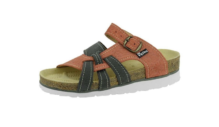 Korkové pantofle pro Vás vyrábíme v malých sériích v České republice. Zakládáme si na kvalitě a preciznosti ve výrobě, obuv Peon® vyrábíme s ohledem na pohodlí a zdraví Vašich nohou což dokazuje osvědčení testovacího institutu ITC jako „lehká otevřená pracovní obuv“.Celokožené odlehčené pantofle na nízkém klínku v moderním stylu ve dvoubarevném provedení s raženou kůží. Podešev odolná proti uklouznutí, odlehčená korková mezipodešev, mechovka tlumící otřesy a upínací pásek s kovovou sponou umožňující nastavení ideální šířky obuvi. Ortopedicky tvarované stélka potažená přírodní kůží a odlehčená podešev odolná proti uklouznutí Vám zajistí zdravé a pohodlné obutí na doma, do školy i do práce.