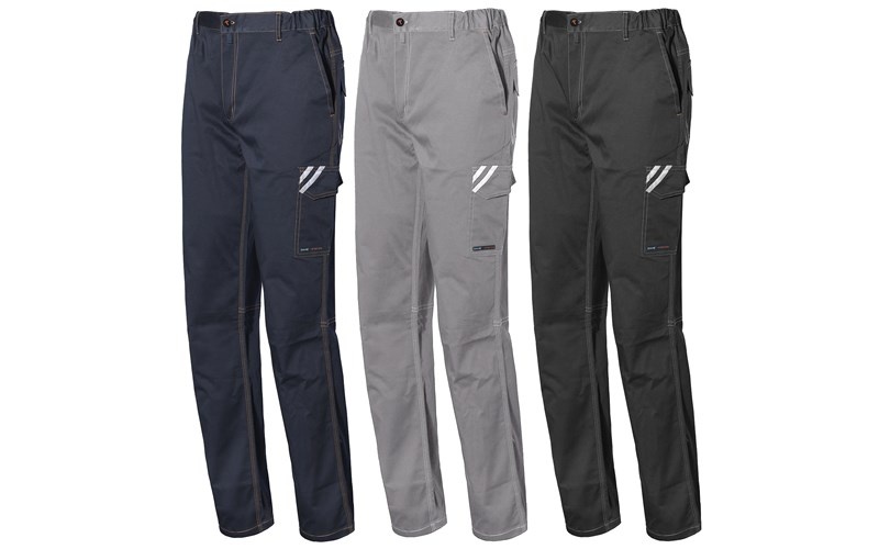 Kalhoty 8036B START s vysokou viditelností, vybavené dvěma předními kapsami, dvě zadní kapsy s patkou, boční kapsa a kapsa na metr. Elastická pruženka v pase zvyšuje přirozený komfort strečové tkaniny.