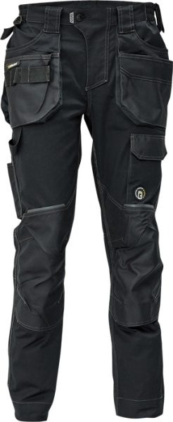 pánské pracovní kalhoty s pružným pasem; elastický inovativní materiál TRIFIBETEX®; odolné trojité prošití nohavic a sedu; Oxford 600D zesílení v oblasti kolen s možností vkládání kolenních výztuh; prostorné multifunkční přední kapsy s poutky na nářadí; reflexní prvky v barevném odstínu; nastavitelná délka nohavic.