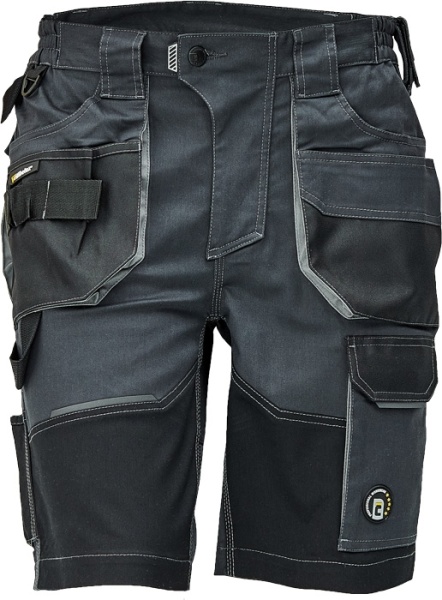 pánské pracovní šortky s pružným pasem; elastický inovativní materiál TRIFIBETEX®; odolné trojité prošití nohavic a sedu; prostorné multifunkční přední kapsy s poutky na nářadí; reflexní prvky v barevném odstínu.