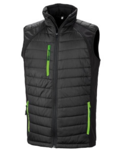 Vodoodpudivý materiál, polstrovaný stojatý límec, lemované průramky, YKK zip s ochranou brady, detaily v kontrastní barvě na náprsní a boční kapse, přístup k zušlechtění na levém prsu, poutko, směs materiálů z prošívaného polstrovaného polyesteru a softshellu, polstrovaná prošívaná oblast těla, materiál odolný proti větru.